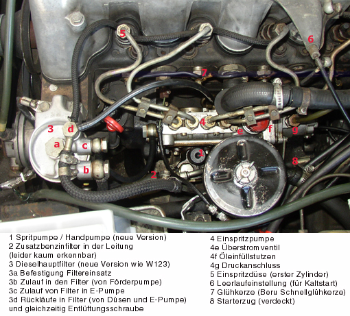 Weil das Bild oben eine Version mit dem Dieselhauptfilter aus einem W123 zeigt, hier noch die Originalausführung im Bild: