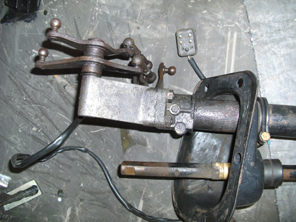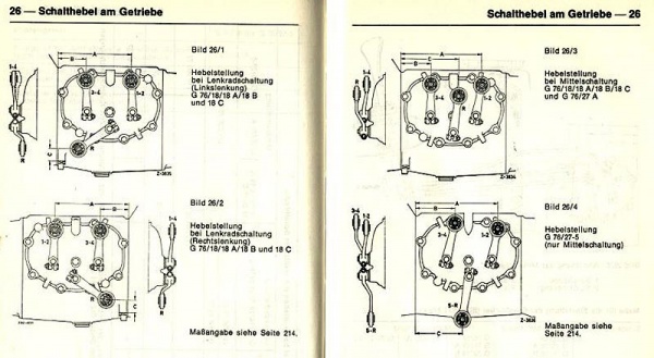 - An der Lenksäule werden zwei Hebel noch mal umgelenkt und einer besitzt keine Umlenkung. Die beiden mit der Umlenkung sind für die beiden oberen Schalthebel am Getriebe (Vorwärtsgänge), wobei der, welcher näher am Motor sitzt, für den vorderen und der, der weiter weg liegt, für den Hinteren Hebel ist.