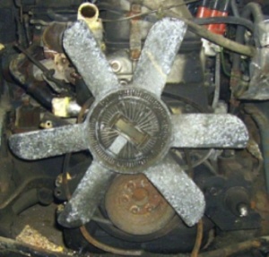 Diese Viskosekupplung kann versagen, wodurch das Lüfterblatt zu wenig oder gar nicht mehr mitdreht. Es kann auch durch Verlust von Silikonöl zu Ausfällen des Lüfters kommen.