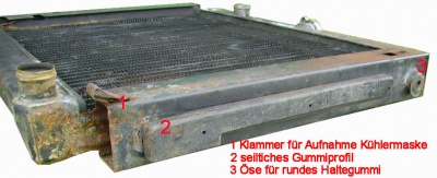Kühler sind nur von oben in den Karosserierahmen eingesteckt. Sie werden durch ein längliches Gummiprofil gehalten.