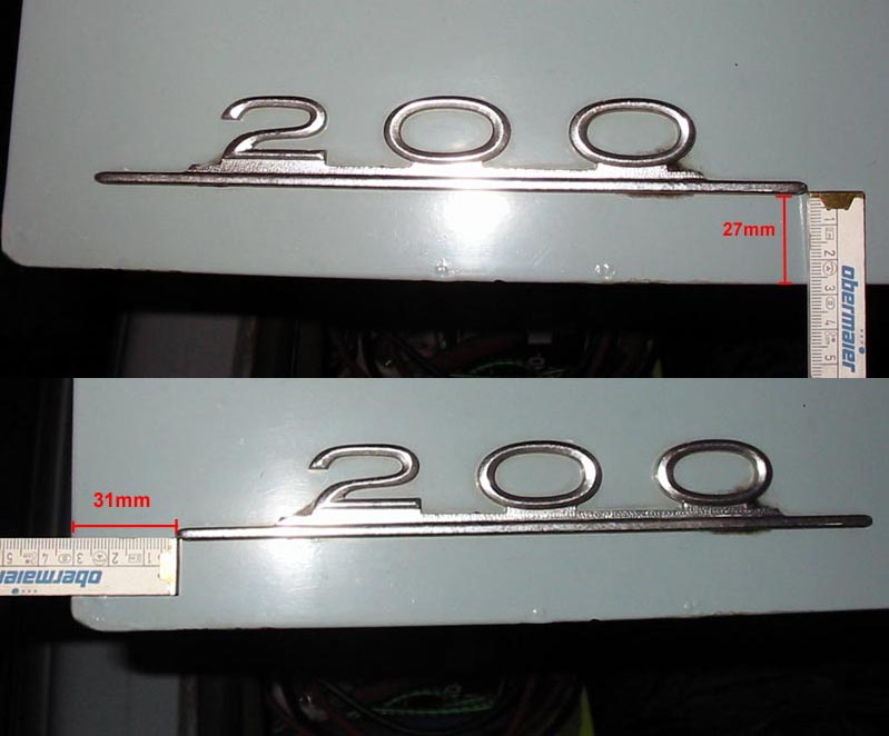 Immer wieder gerne gefragt - wo wird das Typenschild am Kofferraumdeckel positioniert? Hier ein Bildchen. Gemessen jeweils von der Kante Kofferraumdeckel zum äußersten Maß des Typzeichens.