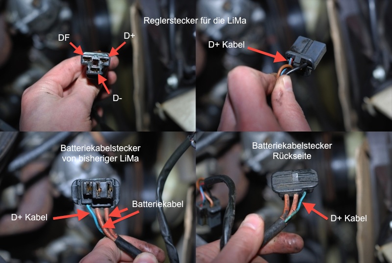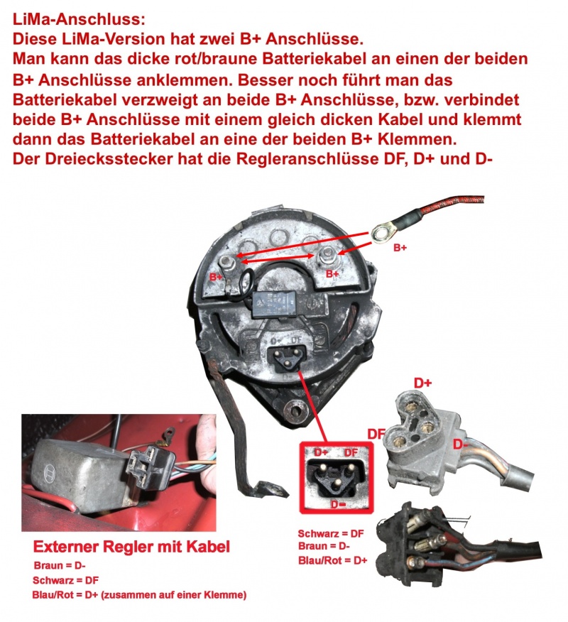 Unser Forumsmitglied Michael aus Köln hat nachfolgend noch eine weitere Anschlussinfo für eine LiMa mit einem älteren Regler-Stecker zur Verfügung gestellt.