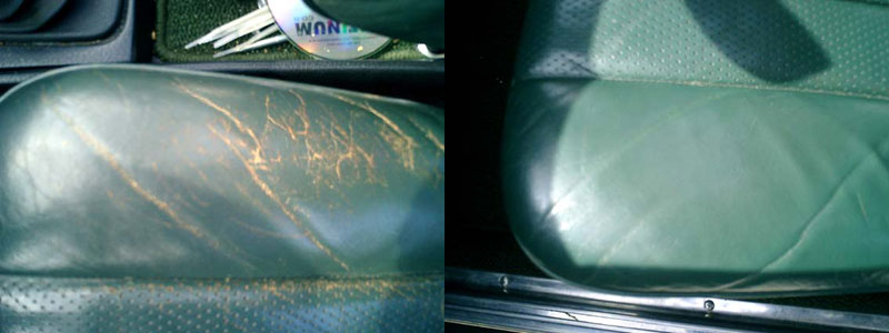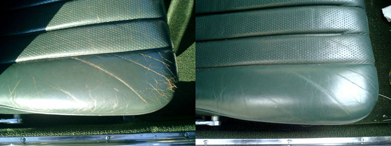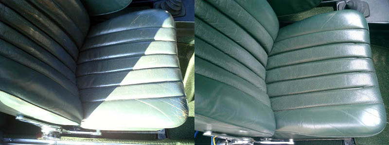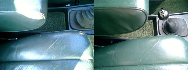 Auch der Innenraum eines Oldtimers will gepflegt sein! Und das ist eine Arbeit, die man ohne Probleme selber machen kann! Ich hab mich mal ums Leder gekümmert. Ich war auf der Techno-Classica in München und bin am Stand vom Lederzentrum vorbeigekommen, hab mir nach Gefühl einfach eine Flasche Leder-Fresh gekauft, und mich daheim an die Arbeit gemacht. Erst mal die Flächen mit einem handelsüblichen Lederreiniger aus dem Baumarkt schön sauber gemacht, dann angefangen die Farbe mit einem Tuch dünn, in mehreren Schichten, aufzutragen. Bei kleinen Rissen oder aufgebrochenen Stellen sieht man sofort den Erfolg. Auch die Fläche ansich wird schöner! Anschließend trocknen lassen, und mit normalem Lederfett einfetten. Ich habe bis jetzt die beiden Vordersitze gemacht, da die Rückbank noch recht in Ordnung ist. Alles in allem würd ich sagen 3-4 Stunden Aufwand für beide Sitze. Die Sitze waren vorher nicht schlecht, aber ich finde sie jetzt definitiv schöner.