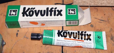 Nach einer Antrocknungszeit von 30 min. hab ich das Lederstück aufgelegt, drauf geachtet, daß nichts verrutscht, und es mit Holz und Zwingen fixiert.