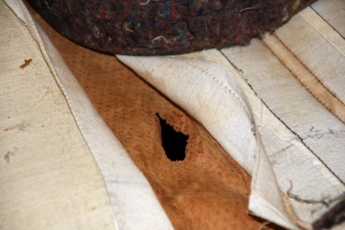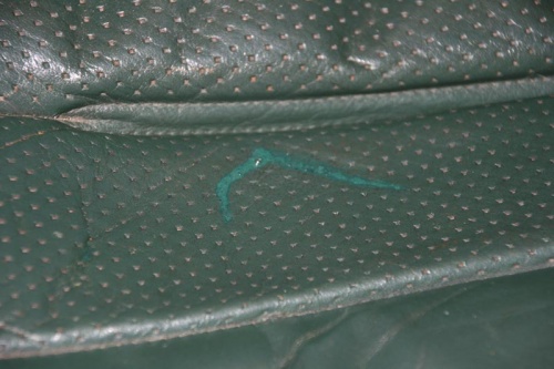 Man kann nun vorsichtig das Leder abnehmen. Dann war der Stoff daran nun noch mit Metallklammern um die Polsterung und das Sitzgestell befestigt. Die hab ich alle rausgezogen...