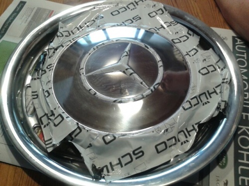 Zunächst die blanke Radkappe, es ging mir hier nur ums Abkleben: