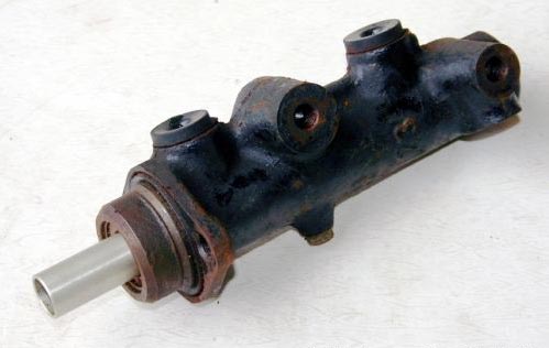 - HBZ von der Bremsservo demontieren (O-Ring). Ausgebaut ist er nun, vorsichtig den aufgesteckten Vorratsbehälter vom HBZ abnehmen (sie brechen mitunter gerne, nicht zuviel Gewalt anwenden) und im Ultraschallbad reinigen, Heißwasser Spülbecken und Industriereiniger gehen aber genau so gut. Der hier abgebildete Bendix-Schrott ist nur ein verdrecktes Beispiel: