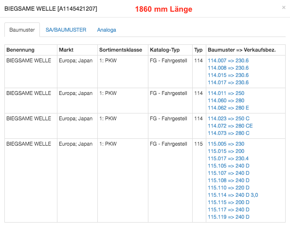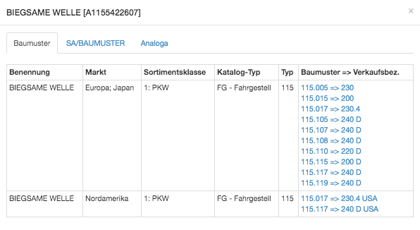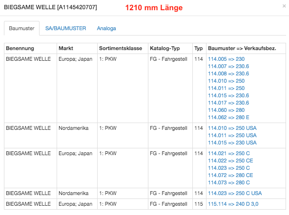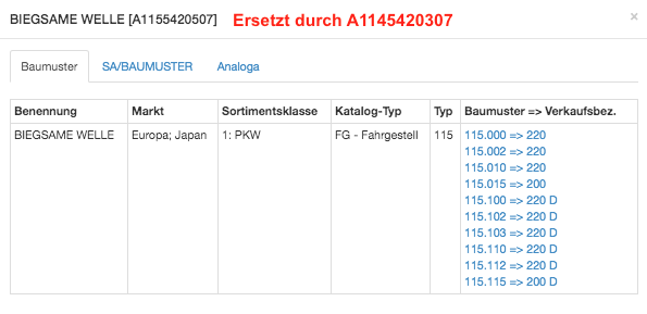 Fallweise wurden im Laufe der Zeit "Baumuster-überspringende" Austausch-Varianten festgelegt: Z.B. Statt A1155420507 die Nummer A1145420307.