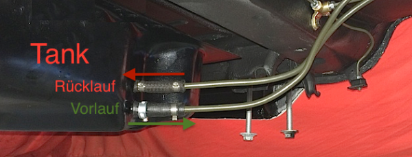 Achtung: Es kommt leider immer wieder mal vor, dass durch Laien die Vorlauf- und Rücklaufleitungen am Tank vertauscht wurden. Dieses kann in Folge durchaus zu Störungen im Motorbetrieb unter Last führen, weil dann die Treibstoffzufuhr gestört ist.