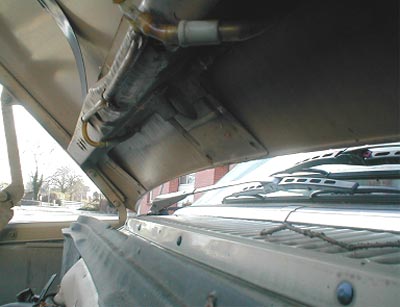 Wenn sich - wie so oft - hinter dem Wasserbehälter am Stehblech Korrosion zeigt und sich zudem Laub und Dreck auf dem darunter liegenden Kabelstrang abgelagert hat, sollten diese Bereiche vor Einbau des Behälters gereinigt und konserviert werden. Wer Korrosion durch den Behälter am Stehblech zukünftig vermeiden möchte, kann sich ein kleines Stück Gummi an die Stelle des Wasserbehälters kleben, der am Stehblech scheuert.