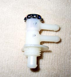 Zuerst das Ventil samt Deckel vom Wischwasserbehälter abnehmen (wenn das Ventil eh undicht ist - sie rosten oben am Metalldeckel oft durch - dann gleich neu bestellen) und den Behälter vom Halter abnehmen. Jetzt den Rest der sich im Behälter befindlichen „Brühe“ ausschütten und gegebenenfalls mit einer Zopfbürste innen gründlich reinigen, gerade wenn hartnäckigere Verschmutzungen am Boden zu sehen sind. Dann den Behälter mit sauberen Wasser + Reiniger/Frostschutz befüllen und wieder einhängen. Die Leitungen vom Ventil abnehmen und das Ventil vorsichtig wieder auf den Behälter draufklemmen. Bei der 2. Ausführung sitzt das Ventil an der Schottwand - somit konnte dann wegen sonst fehlender Höhe das Volumen des Wischwasserbehälters vergrößert werden. Das Ventil ist an den Stutzen mit „P“ für Pumpe in „D“ wie Düse markiert - so kann später beim Aufstecken der Schläuche nichts schief gehen.