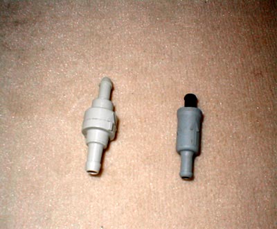 Rückschlagventile, links aus dem Zubehör, rechts original